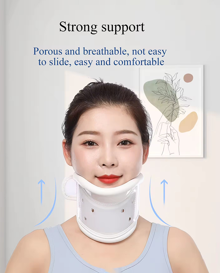 This adjustable hard cervical collar is designed to provide firm neck stabilization and reduce cervical spine movement. It features a contoured chin support, breathable panels, and adjustable straps for comfort and secure fit. Suitable for daily use, rehabilitation, and post-injury support.